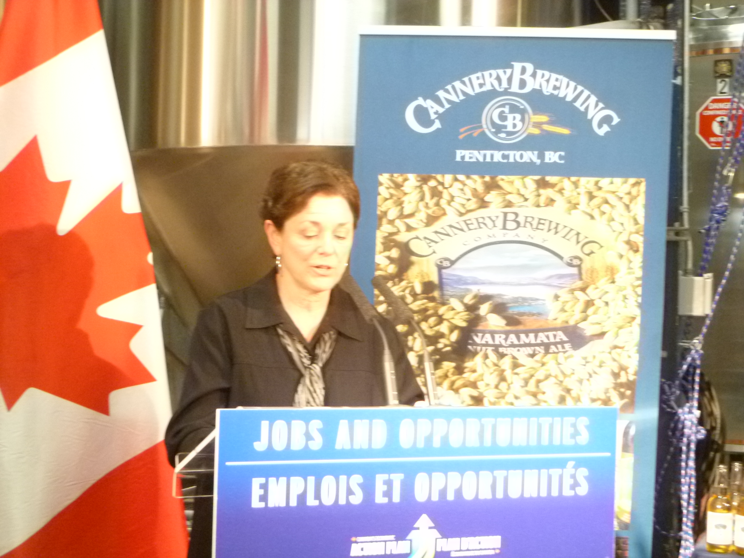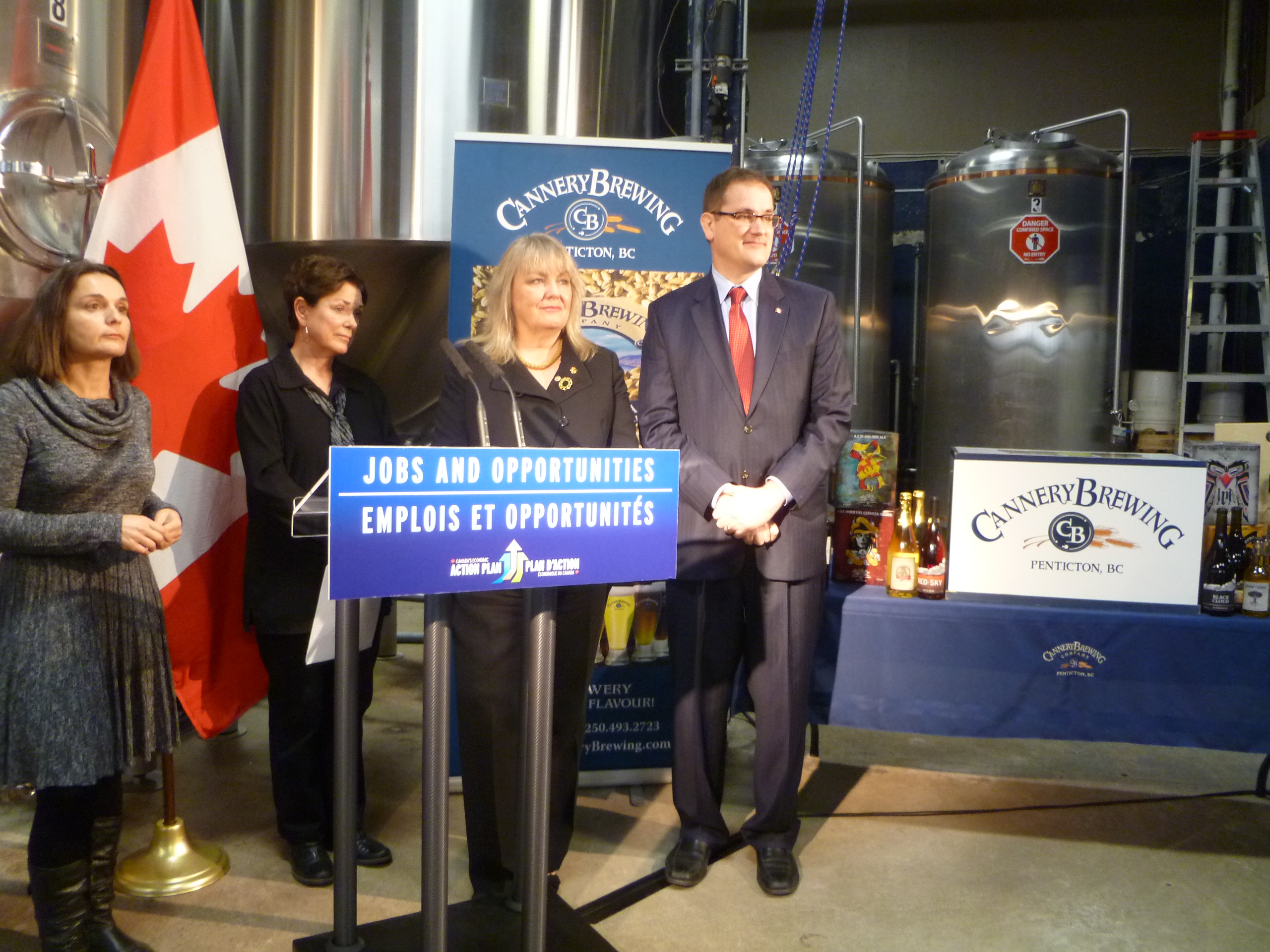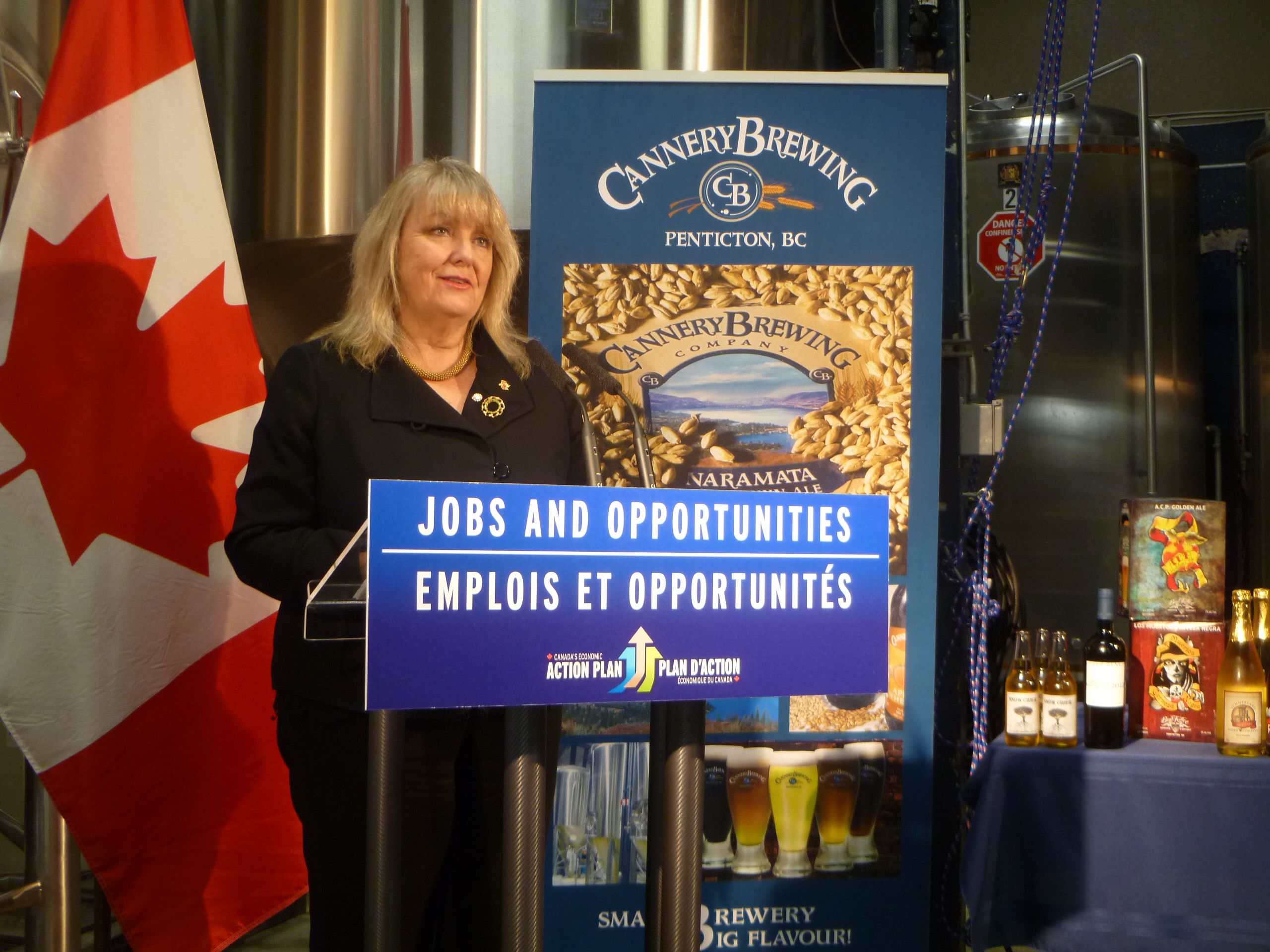 Minister of National Revenue, The Honourable Kerry-Lynne D. Findlay made a breaking through announcement for Craft Distilleries and Beer Breweries on February 13, 2015 in Penticton: