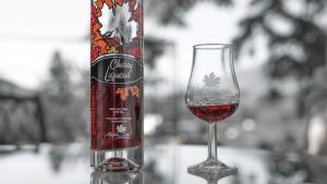 – For decoration, I like to use pie cherries that I harvested in July and stored them fresh in a mason jar covered with our cherry liqueur.